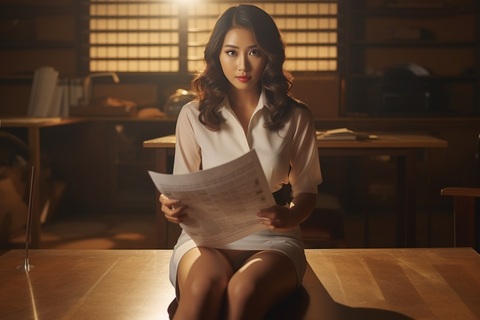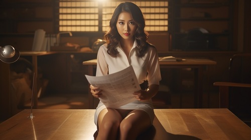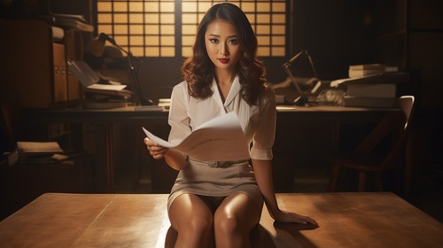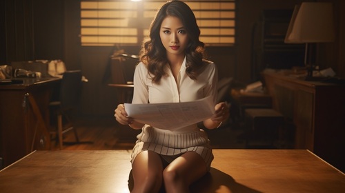 【AIミニスカOL】そそるパンスト美脚、タイトミニスカの裾