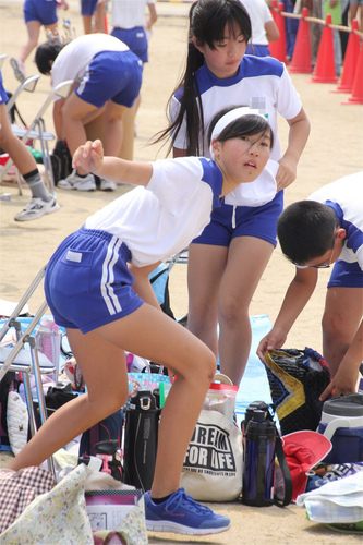 競技中ではないのにシャツが短パンに入っているかチェックする娘など。