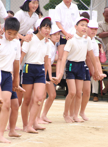 短い短パンで騎馬戦。