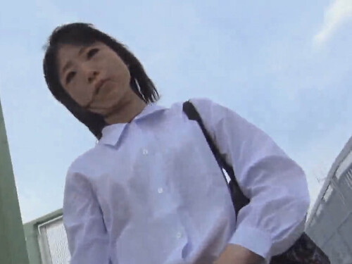 もちろん彼女も毎朝ここを上り下りしています。盗撮や痴漢が頻発している事をこの標語は意味してるのでしょう。そんな場所で彼は「いつも通り上がって」と指示し、こともあろうに下からカメラで狙います。さすがにJのCのスカートは長くパンツは見えませんが、リアル通学姿だと思うと、あたかも自分がこの土地のロリコンリーマンオヤジにでもなったかのような錯覚に陥り動揺してしまいます。そして見晴らしの良い歩道橋の頂上、しかも下から丸見えの階段上で、彼はスカートをまくり上げパンツを露出するよう命じます。その様を後ろから歩いてきた小学生の男の子に興味と不審の混じったような目で見られる場面の罪悪感といったら。標語を掲げたPTAにこの映像を見られたら間違いなく彼は家の場所を突き止められチンポをちょん切られ見せしめに歩道橋から吊るされますね。