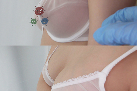 [ワクチン接種]巨乳ちゃんのブラが透け透けでおっぱい丸見えw脱ぐのを躊躇う意味に納得[胸チラ]