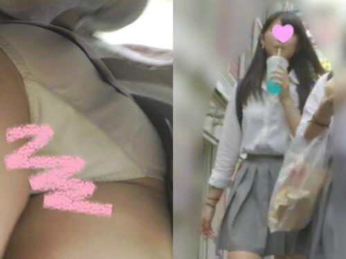 ■街を歩く姿を前から姿撮りカワイイ>街中を後ろから逆さ追い撮り>ファーストフードのお店の前で逆さ>スカートの中にカメラを突っ込む~モフモフパンツを接写>お店の前で粘着ネチネチ