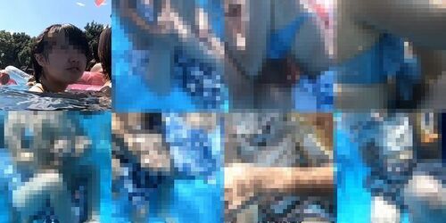 プールの中でイチャイチャしているカップルに粘着して何しているのか