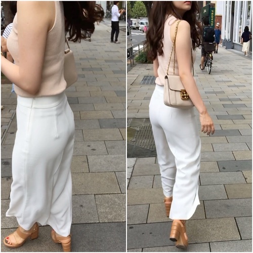 まさに全てを兼ね備えた女性だ。しかもお尻のラインがしっかり堪能できる白パンツを着用。
