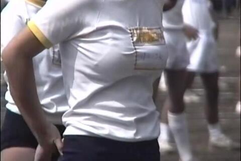 例えば、17:20前後で登場する黄色体操服の子 準備運動シーンで、かなりの巨乳ちゃん しかも三角ブラ?のようなものが透けて見える この当時はこういうブラが多かったようです