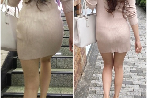 短いニットワンピースは下からのぞかせようと誘惑する気満々。