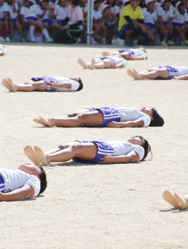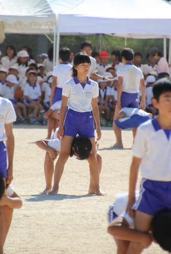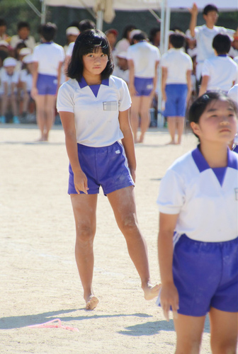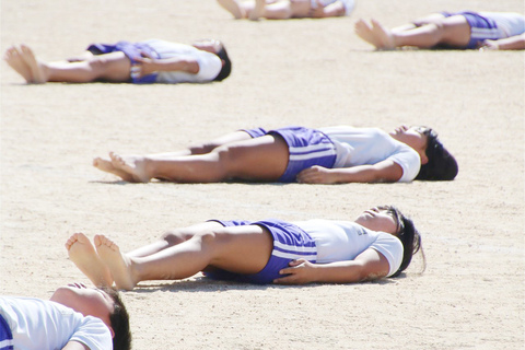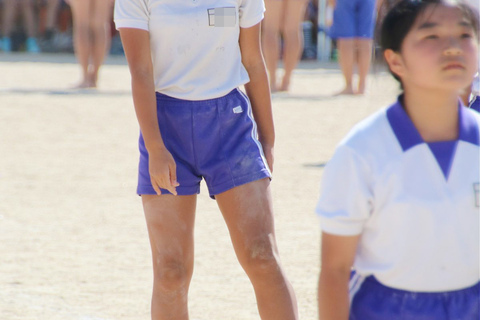 比較的大柄な娘がボリューム感のある太ももを砂で汚し