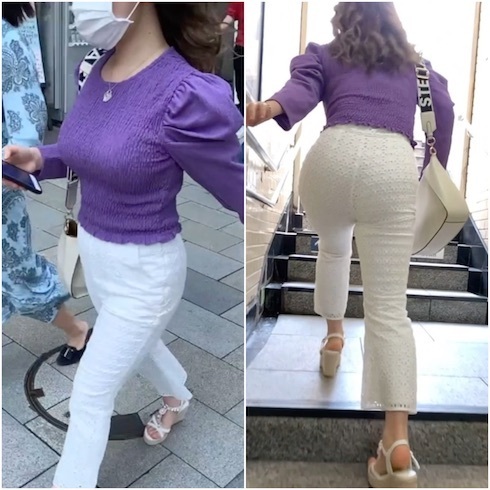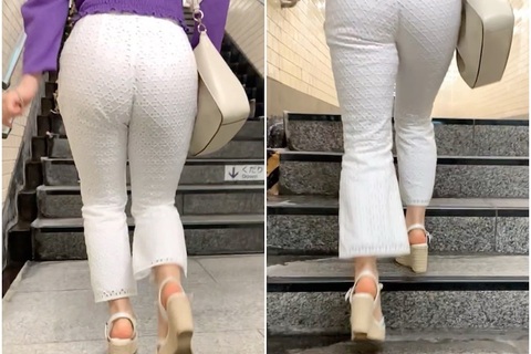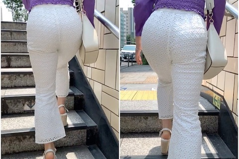 タイトな白パンツでデッカく膨らみぷるぷる揺れ動くヒップライン、