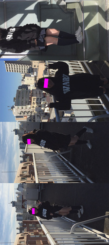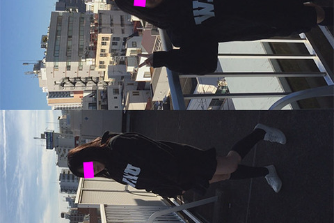 映像は、放課後に屋上に上がって隣のビルのベランダに向かって脱がせ、そのままフェラ、柵に掴まらせて立ちバックした時のものです。