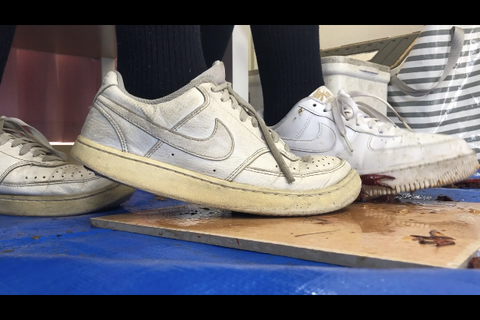 2回目撮影❣️可愛い清楚系専門学生とお友達のダブルクラッシュ 制服 足元アングル編