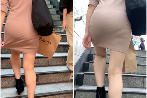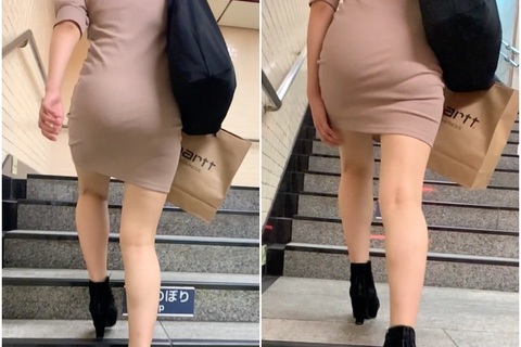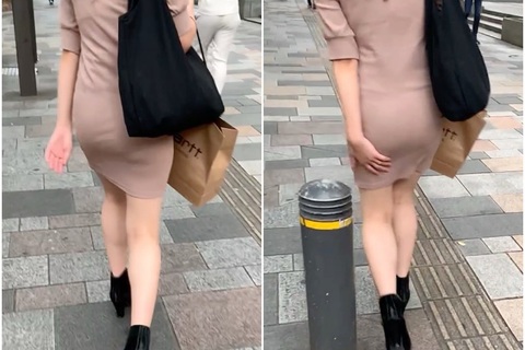 《ビヨーンと引っ張る!ミニ丈ぴちぴちワンピの美女》
