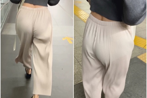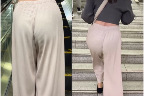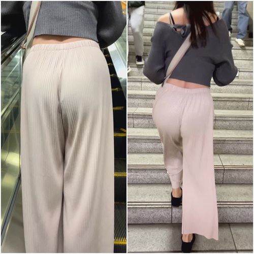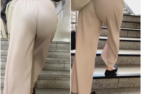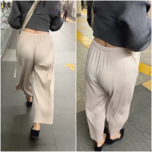 凄くイイ丸み!割れ目に食い込むニットパンツ