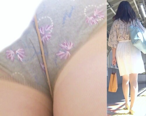 パンチラ盗撮 グレーの花柄パンツを超接近撮影