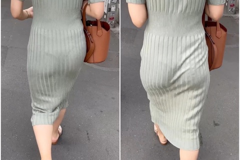 《三角ラインがメッチャくっきり!触りごごちの良さそうなヒップのOL》