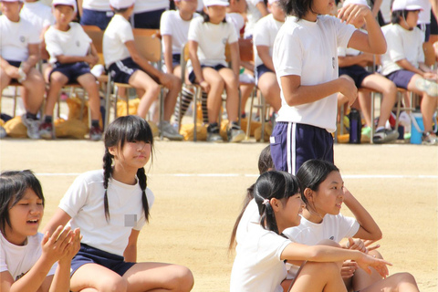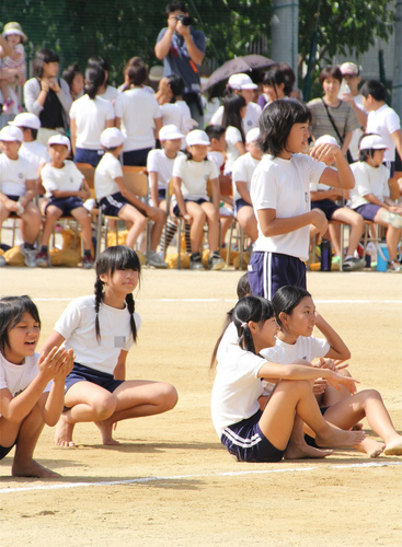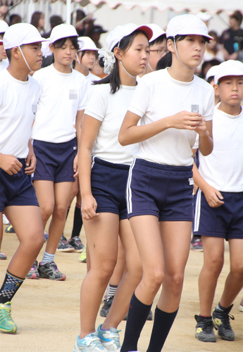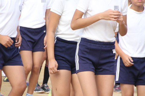 上が白1色の体操着で下が紺地白2本線のオーソドックスな