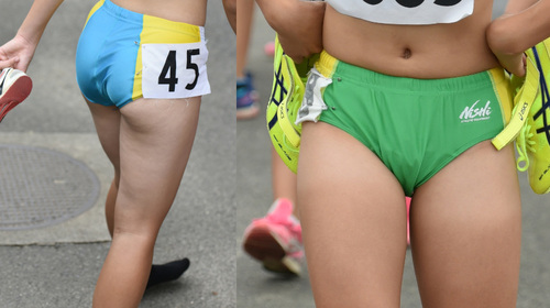 ブルマで日焼け跡、食い込み、スジ、浮き出たり。