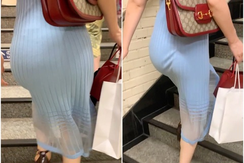 派手で目立つ真っ青なワンピース姿でお出かけ。