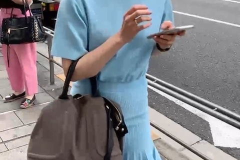 全身ブルーカラーが良く似合い着こなす上玉美女。