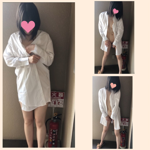 その後は、外に向いて大開脚してくぱぁしてみたり、シャツの前を開いて裸をさらけ出してみたり、恥ずかしさで顔は真っ赤。