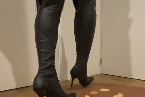 コメックスのピンヒールニーハイブーツでクッキー踏み潰し #フードクラッシュ #ニーハイブーツ