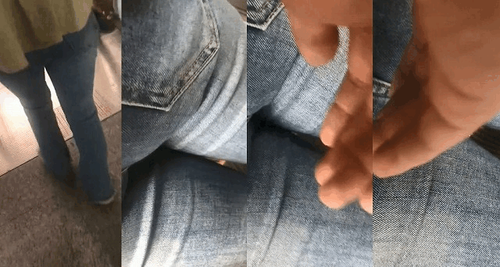 ズボンやパンツ越しではなく直接女性のお尻にタッチさせています。