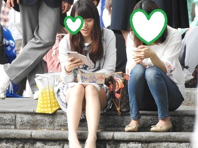 石段に友達と一緒に座っている超~S級の綺麗なお姉さんが、パンスト越しの白のパンティーを見せていたり・・・生まれて初めてのパンチラ撮影です。手が震えてしまい、いい動画のみを編集したら約2分14秒になりました。(臨場感が凄いと思います。)