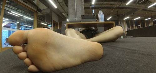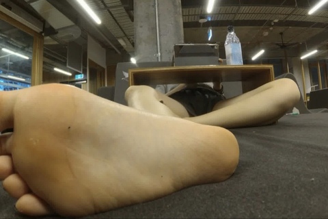 休憩場でくつろいでいる可愛いJDの女の子の足裏を接写!