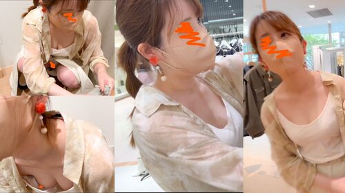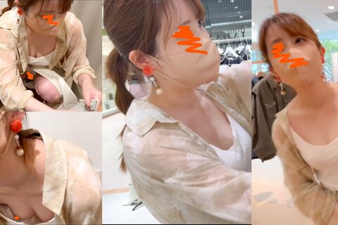 【店員さん個撮⑯】美人アパレル店員さん2名!ブラが浮きすぎた極上の巨乳胸チラ!!