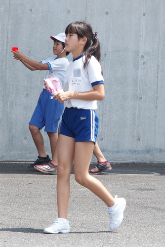 蛍光グリーンの陸上ユニ娘のボリューム。