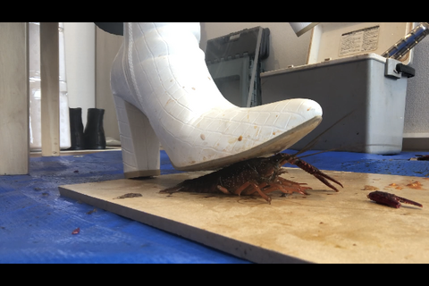 最初は戸惑ってますが、だんだんと楽しんで残酷に踏んでますww😆🦞