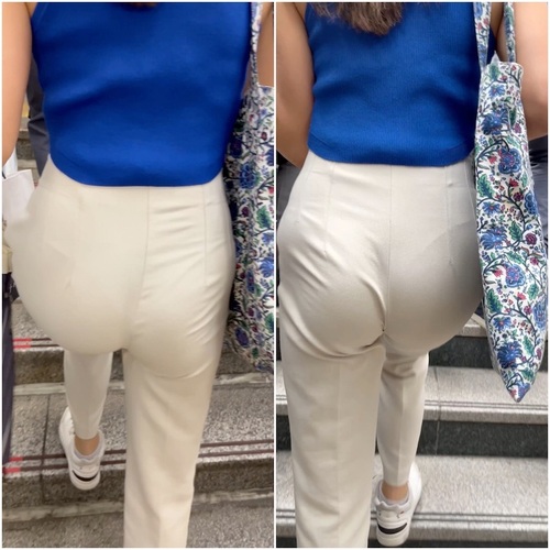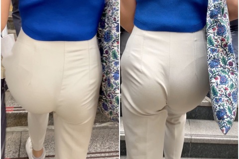 《Tとハイウエストパンツの相性は抜群!小麦色肌のプリケツOL》