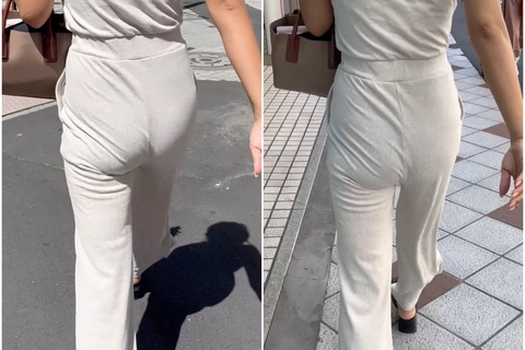 《尻感丸出し!抜群なスタイルを強調するニットパンツスタイル》