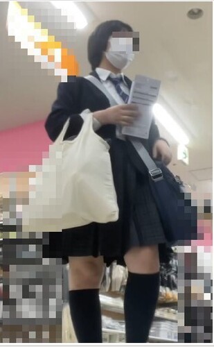 1人目が今作メインのJKでまだあどけなさが残るJK。近づいてフロントを撮影、その後後ろからの撮影となります。