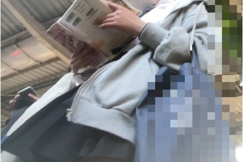 電車待ちJKフロントとバックの逆さ撮り 他二名