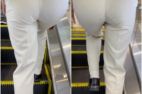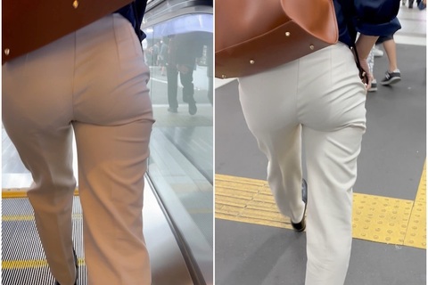 《髪の毛がパンツに!?デッカいPラインを透けさせる美巨尻OL》