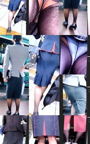 激写□客室乗務員のスカート内部□美人CAさん6人