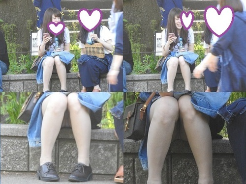 石椅子に友達?と一緒に座って、会話に夢中になっているS級の綺麗な姉さんが、パンスト越しの白のパンティーを見せていました。(女子アナにいそうな感じの美人さんです!!)