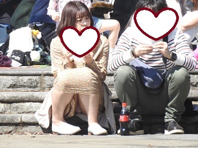 1人目・・・・・石段に座って彼氏と一緒に食事をしている可愛いお姉さんが、白のパンティーを見せています。純白パンティーには大興奮です!!
