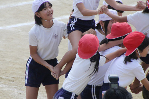 お知らせを聞き2Fへ。2Fからの全員裸足騎馬戦観戦となりました。