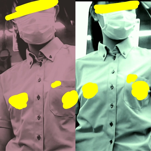 まるで中◯生さん?みたいなお顔、の~モザイク!マスクしてもロ◯お顔丸見え、幼くみえますが、明らか~に18歳以上の可愛い学生風の娘さんです。