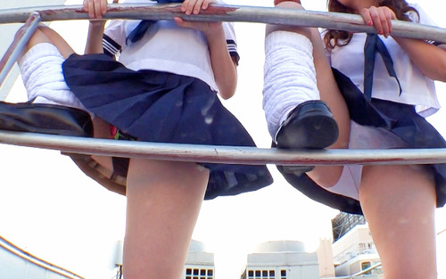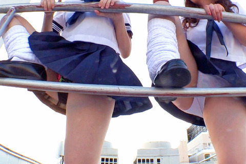 デカパン☆ミニスカ女子ちゃん仲良しコンビが、屋上で仲良く休憩しています♪