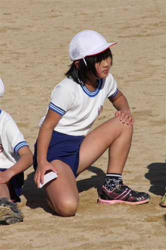 指示したのかは不明ですが、上着は本格的なのに下は短パン丸出しで