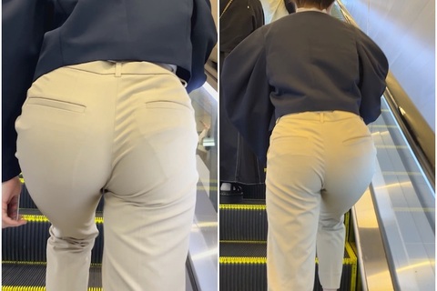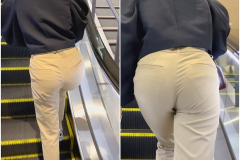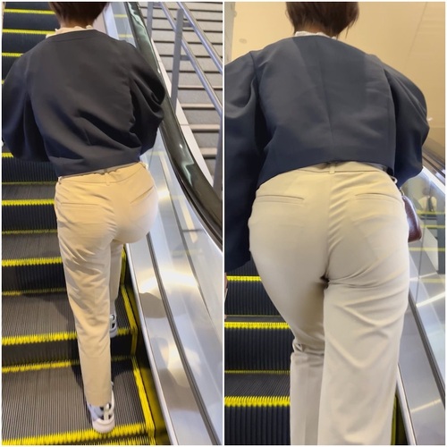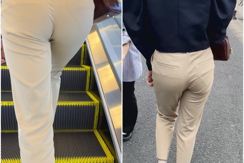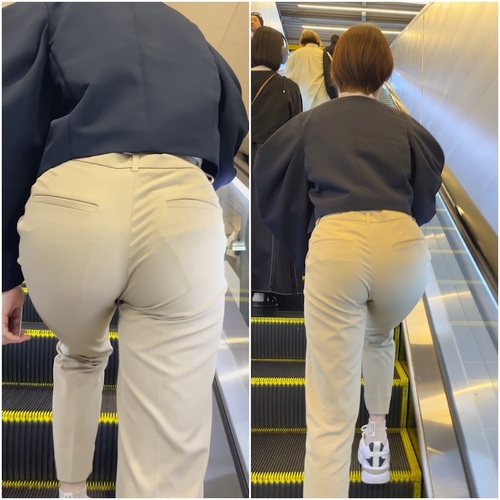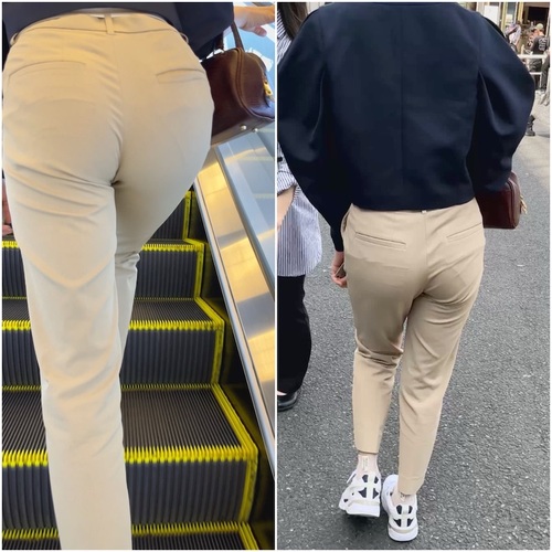 あまりお目にかかれないベージュパンツスタイルのOL 。