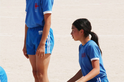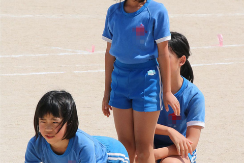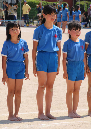 青地に体操着の赤のアクセントと