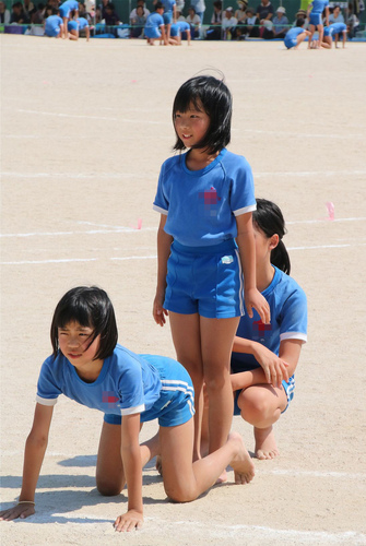 全身青チーム組体操の続き。
