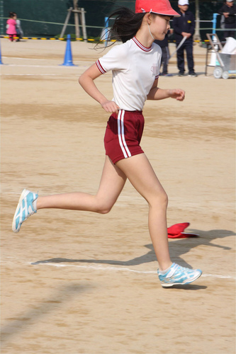 しっかりシャツ入れ体操着スタイルのギャップが良好。