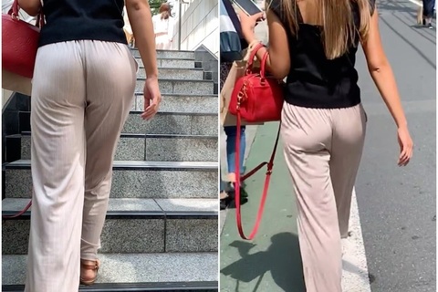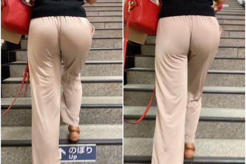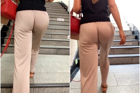 《縦スジがエロい!リブパンツの中でうごめく尻肉》