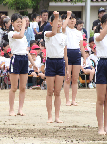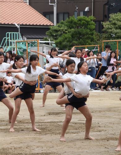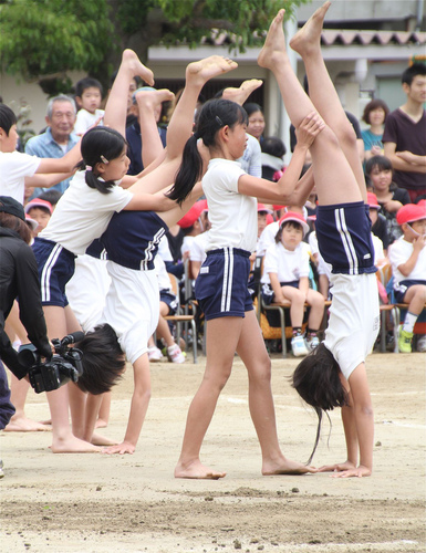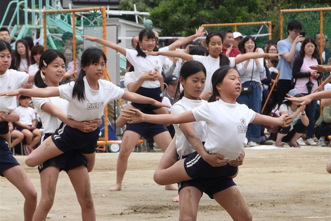 組体操の様子です。みんなが曲に合わせていろいろな格好をするのが