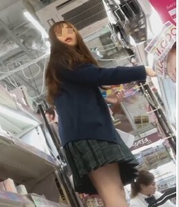 1人目は茶髪ロングヘアー、顔はハーフみたいな可愛いJKです。スカートも短めでスカート内は当たりの白いパン