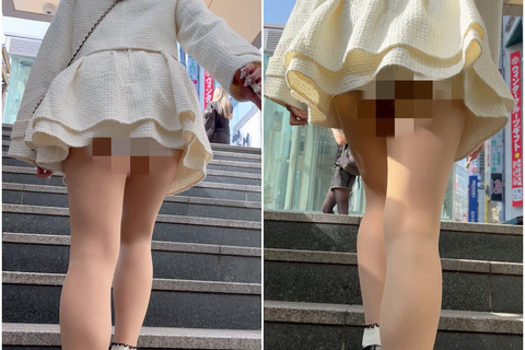ヒラヒラ舞うミニスカート姿でお出かけ。